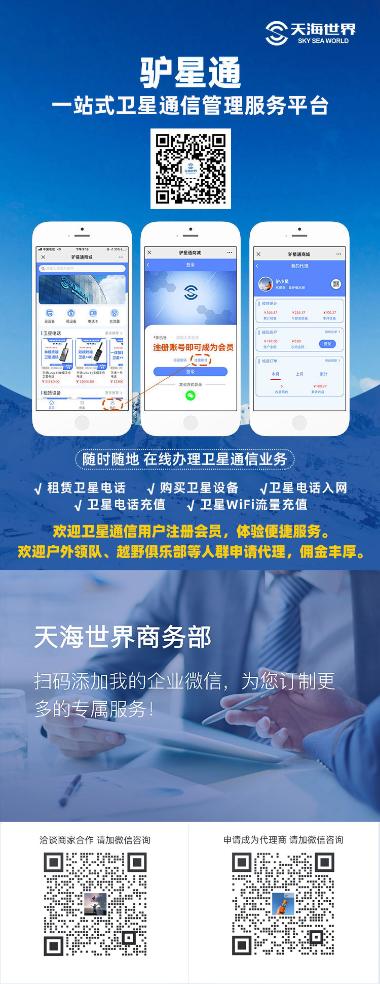 針對個人客戶的需求,通過“驢星通”平臺租賃或購買衛星電話、衛星上網設備等衛星通信終端,無論海上或陸地,不同應用場景下的衛星通信用戶都可以隨時隨地、直通官方運營商、在線辦理衛星通信業務。