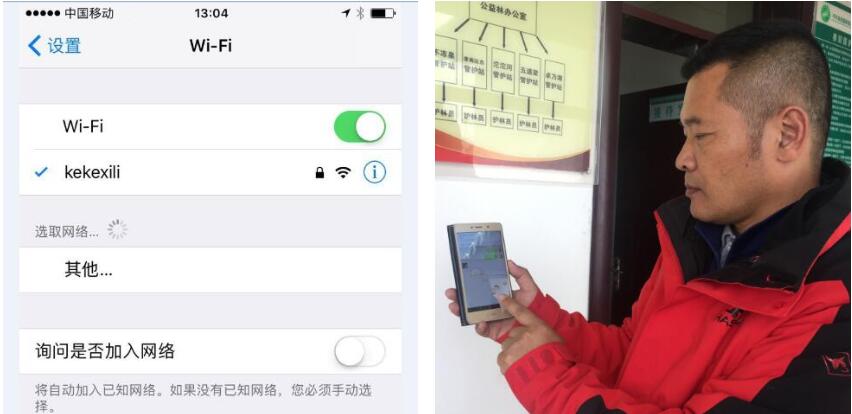 可可西里野生動植物保護協(xié)會陳會長在保護站測試衛(wèi)星WIFI