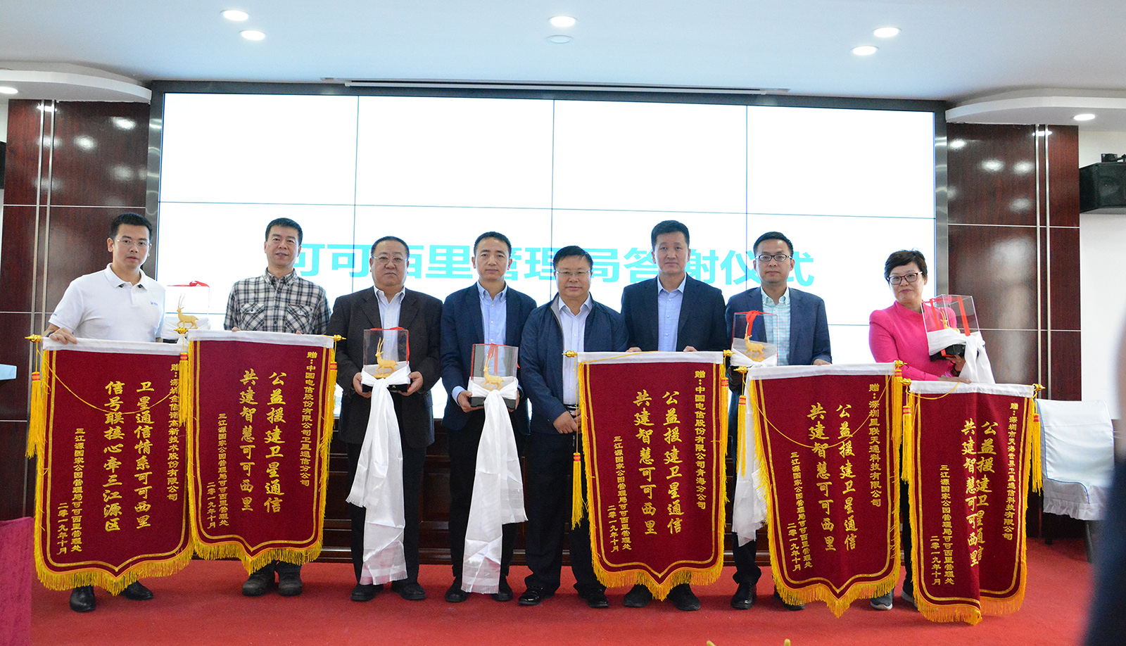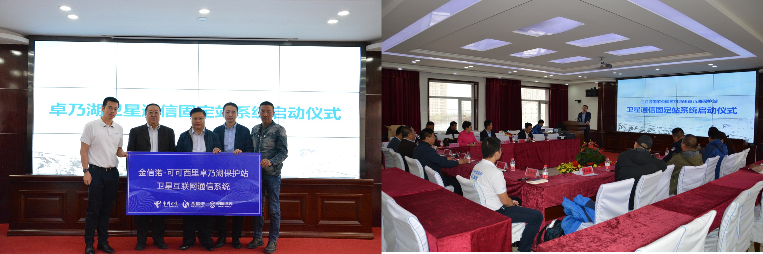 10月19日,在可可西里保護區管理局,舉行了一場簡單而隆重的啟動儀式,中國電信股份有限公司衛星通信分公司呂俊俐總經理、中國電信股份有限公司青海分公司唐小文總經理、深圳金信諾高新科技有限公司無線與光網絡產品經營團隊副總經理范修遠、深圳市天海世界衛星通信科技有限公司邱志英總經理、深圳星聯天通科技有限公司總經理薛智軍等援建單位領導參加了此次卓乃湖衛星通信固定站的啟動儀式,在管理局現場通過衛星通信與卓乃湖保護站的施工人員和巡山隊員進行了視頻連線。此次中國國電信援建內容還包括天通移動衛星電話、衛星固定站及通信服務,其中我國自主研發的衛星移動系統——天通衛星首次引入可可西里,從此可可西里通信進入“手機時代”。