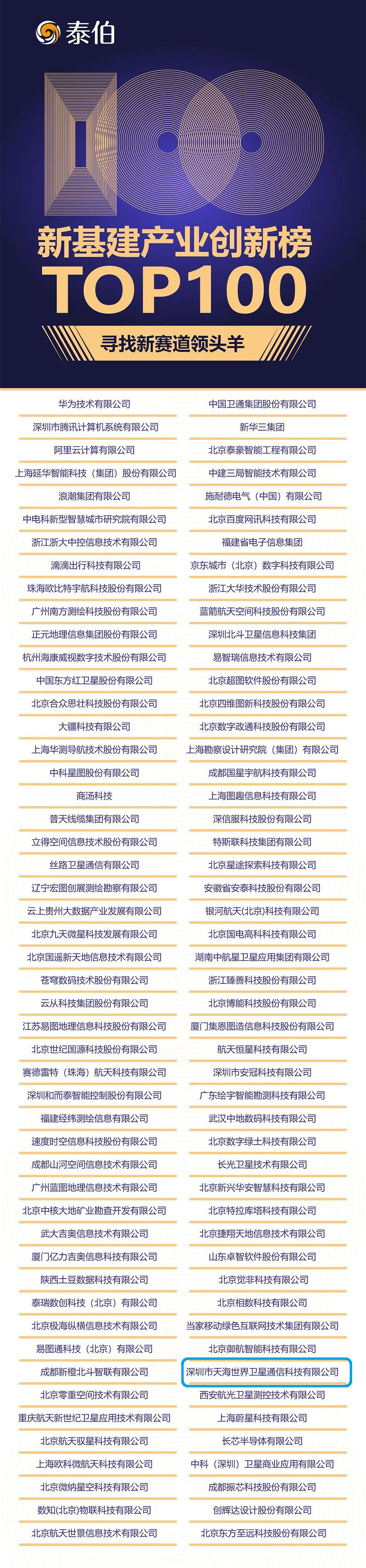 本次由泰伯網(wǎng)發(fā)起的“新基建產(chǎn)業(yè)創(chuàng)新榜TOP100”調(diào)研及評選項目,重點聚焦衛(wèi)星互聯(lián)網(wǎng)、新型智慧城市、自然資源信息化三大領(lǐng)域,旨在尋找“新基建”浪潮中的領(lǐng)頭羊和獨角獸,發(fā)現(xiàn)真正推動產(chǎn)業(yè)創(chuàng)新與變革的引領(lǐng)者。