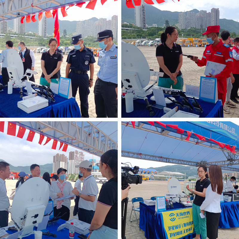 本次技術展主旨為防震減災科普宣導與應急救援裝備技術展示,有30多家單位和企業(yè)前來參展。展品涵蓋監(jiān)測探測、應急救援、通信保障、家庭備災裝備、無線自組網寬帶多媒體指揮調度系統(tǒng)、多脈沖電涌保護器、各種大型救援車輛等。天海世界攜帶智能便攜式衛(wèi)星上網設備、衛(wèi)星信號室內分布系統(tǒng)終端及衛(wèi)星電話在現(xiàn)場展出,為現(xiàn)場觀摩人員做了詳細的產品介紹。